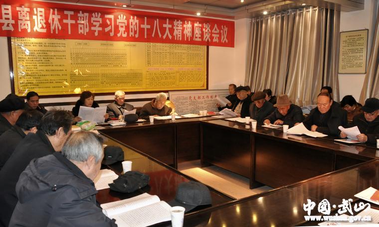 11月27日,武山縣組織部分離退休干部學(xué)習(xí)貫徹黨的十八大精神?h委組織部副部長(zhǎng)、老干局局長(zhǎng)付佑主持會(huì)議。