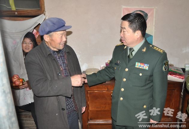 12月5日,天水市委常委、天水軍分區(qū)政委李治林再赴“雙聯(lián)點(diǎn)”武山縣龍臺鄉(xiāng)山羊坪村走訪慰問、宣講黨的十八大精神,并給村上送去價值近2萬元的電腦、棉被等辦公及生活用品,走訪看望了貧困戶李紅義、陳育強(qiáng)、于喜定,并給他們送去了慰問品。