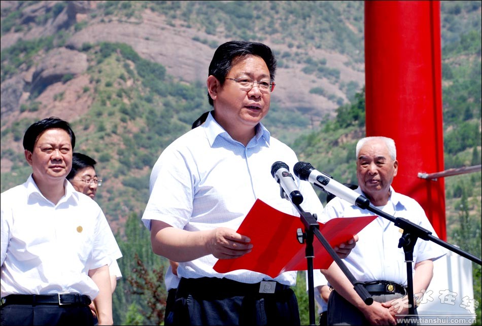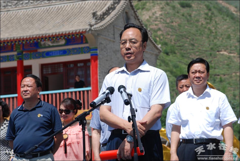 縣委書記張建杰作了熱情洋溢的致辭,他首先代表武山縣四大組織和全縣48萬人民,向蒞臨參加祈福游的各位領(lǐng)導(dǎo)、各位嘉賓和各界朋友表示熱烈的歡迎。他說,武山人文底蘊(yùn)深厚,文化旅游資源獨(dú)特,是絲綢之路重要的旅游目的地。近年來,縣委、縣政府以打造隴上旅游名縣為目標(biāo),以華夏文明傳承創(chuàng)新區(qū)建設(shè)為契機(jī),以特色文化挖掘整理、重點(diǎn)景區(qū)打造提升、旅游品牌宣傳推介為重點(diǎn),打造形成了紅、黃、藍(lán)、綠、墨“五彩四季游”的獨(dú)特旅游格局。特別是水簾洞·拉梢寺世界第一摩崖大佛祈福游的舉辦,讓“祈福圣地·大福武山”旅游品牌馳名隴上、享譽(yù)全國。水簾洞·拉梢寺景區(qū),是全國重點(diǎn)文物保護(hù)單位、國家4A級(jí)旅游風(fēng)景區(qū),是天水市重點(diǎn)打造的兩個(gè)百萬游客景區(qū)之一。千百年來以其渾然天成的自然風(fēng)光、獨(dú)具魅力的石窟藝術(shù)和聚祥納瑞的摩崖大佛吸引著八方來客。今天,在這里舉行2013水簾洞·拉梢寺世界第一摩崖大佛祈福游,誠邀各位嘉賓進(jìn)福門、走福路、登福山、納福氣,共同祈福國泰民安、百業(yè)興旺。希望祈福游能成為各界來賓友誼長(zhǎng)存的新平臺(tái),架起合作的橋梁,助推武山文化旅游快速發(fā)展。同時(shí)也真誠地希望各位領(lǐng)導(dǎo)、各位嘉賓和廣大新聞媒體記者繼續(xù)關(guān)注武山、支持武山, 熱切期盼各位有識(shí)之士來武山觀光考察,投資興業(yè),共謀發(fā)展。