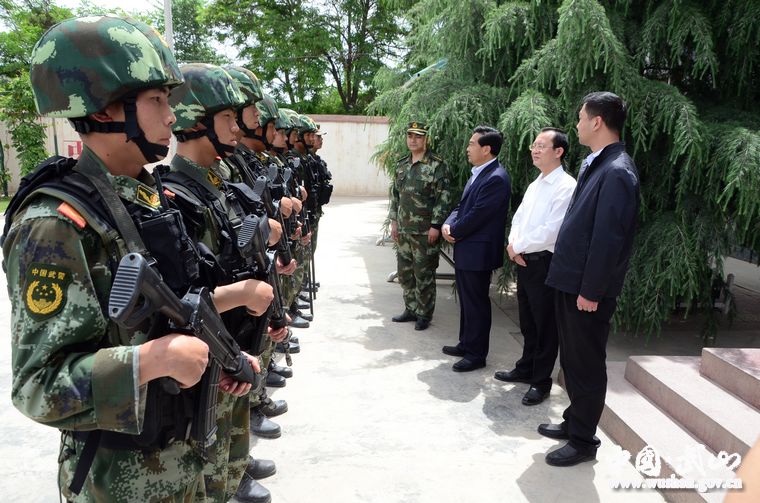 隨后,索鴻賓一行來到縣公安局應(yīng)急防暴處突隊伍訓(xùn)練現(xiàn)場和武警中隊,實地觀看并指導(dǎo)了應(yīng)急防暴處突隊伍演練,并對公安民警和武警戰(zhàn)士在開展反恐防暴維穩(wěn),維護(hù)社會和諧穩(wěn)定工作中所做的成績表示充分肯定。索鴻賓指出,武山地處隴海鐵路與連霍高速咽喉地帶,是連接甘肅東西的關(guān)鍵城市,做好反恐防暴維穩(wěn)工作極為重要。公安武警隊伍是保護(hù)群眾生命財產(chǎn)安全、維護(hù)社會和諧穩(wěn)定的中堅力量,希望廣大公安民警和武警戰(zhàn)士牢記黨和人民的重托,繼續(xù)發(fā)揚不怕吃苦、連續(xù)作戰(zhàn)、敢打硬仗的優(yōu)良作風(fēng),恪盡職守,忠誠履職,近距離精確打擊犯罪,零距離傾力服務(wù)群眾。