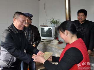 2月15日上午,中共天水市委常委、統(tǒng)戰(zhàn)部長蒲軍赴武山縣榆盤鄉(xiāng)馬河村看望慰問他的聯(lián)系戶。市委副秘書長、督查室主任喬振華一同參加慰問。