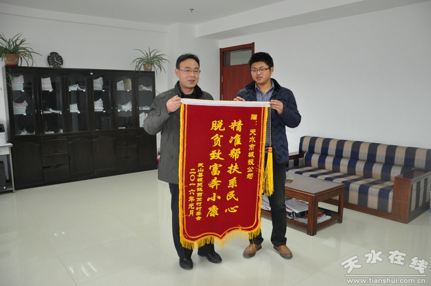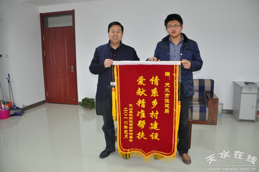 2月3日,武山縣城關(guān)鎮(zhèn)西岔村村級班子成員和村民代表一起,專程為天水市住房和城鄉(xiāng)建設(shè)局及市城投公司送來寫著“情系鄉(xiāng)村建設(shè),愛獻精準(zhǔn)扶貧”和“精準(zhǔn)幫扶系民心、脫貧致富奔小康”的錦旗,感謝市建設(shè)局及市城投公司一年來對西岔村的幫扶和資助。