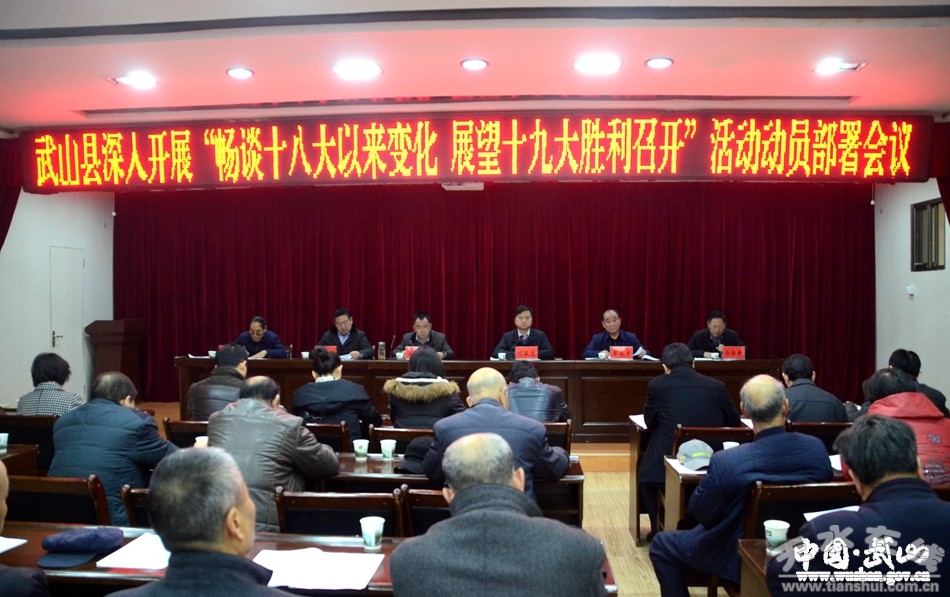 3月17日,武山縣召開(kāi)深入開(kāi)展“暢談十八大以來(lái)變化、展望十九大勝利召開(kāi)”活動(dòng)動(dòng)員部署會(huì)議?h委常委、副縣長(zhǎng)何敬忠主持會(huì)議;縣委常委、組織部長(zhǎng)高朝峰作動(dòng)員講話;縣人大常委會(huì)副主任蔡永彥,縣政協(xié)副主席郭遠(yuǎn),縣委宣傳部、縣直有關(guān)單位工作人員及老干部代表參加會(huì)議。
