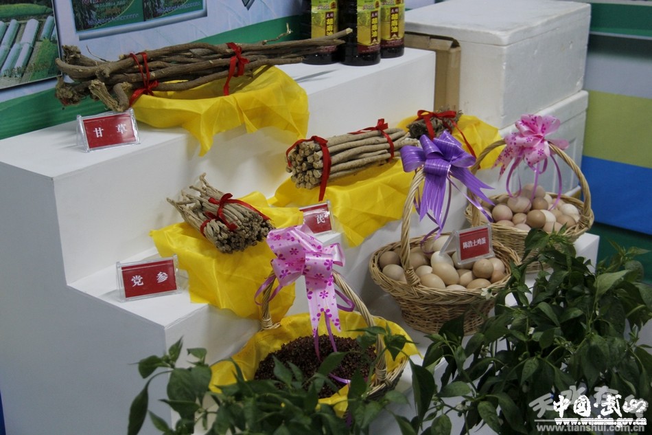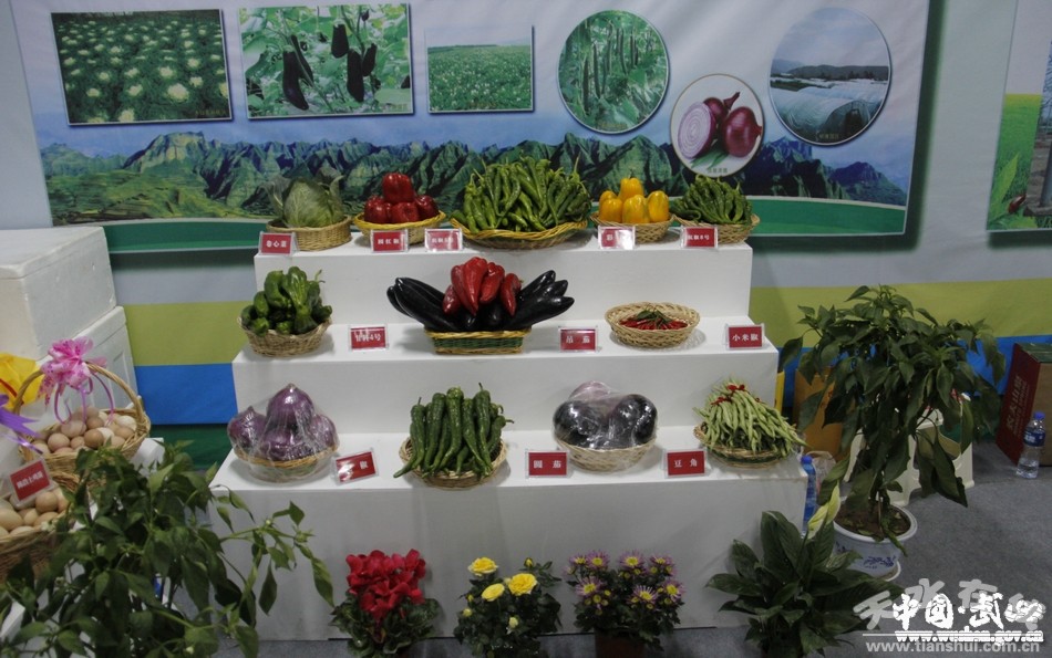 高樓鎮(zhèn)整個展館布置以“自然生態(tài)菜,健康好口味”為主題,主要陳列的蔬菜品種有八院航天辣椒5號和8號、高窯土蜂蜜、八院明遠(yuǎn)土雞蛋、柴坪胡麻大榨油、子年西紅柿、黃瓜、大圓茄等。
