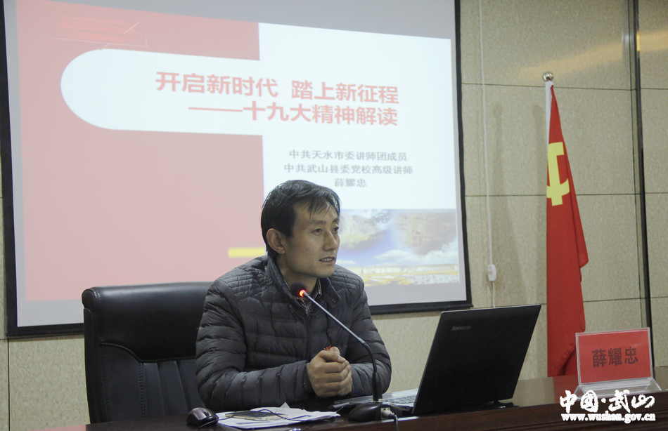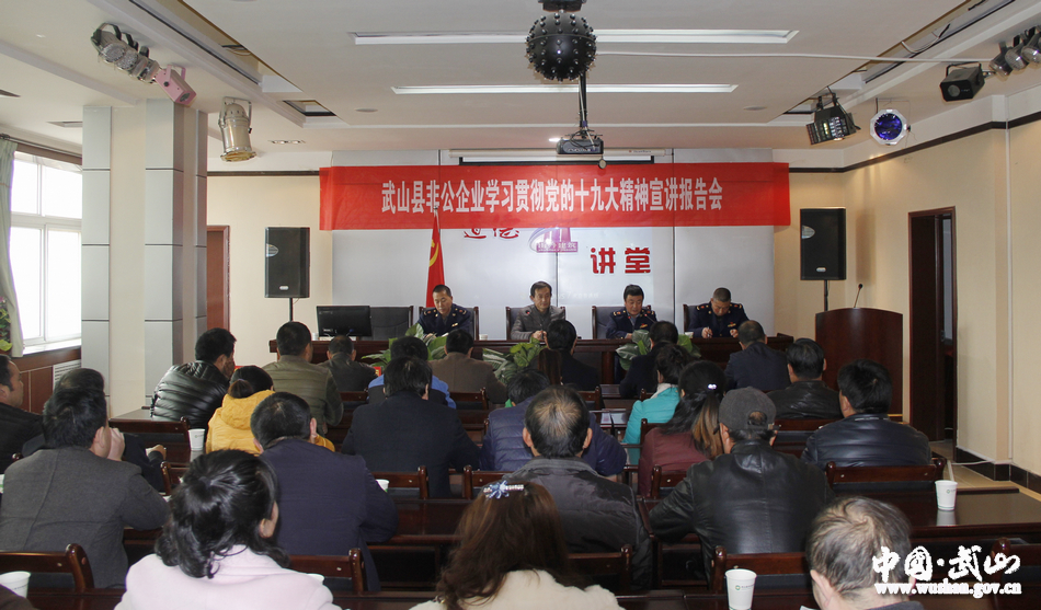 11月28日,武山縣非公企業(yè)學習貫徹黨的十九大精神宣講報告會分別在武山縣山丹建筑公司、洛門世紀家居建材商貿(mào)公司會議室舉行,報告邀請中共天水市委宣講團成員、中共武山縣委黨校高級講師薛耀忠作專題宣講。全縣各個非公企業(yè)負責人、黨員職工代表聆聽了宣講報告。