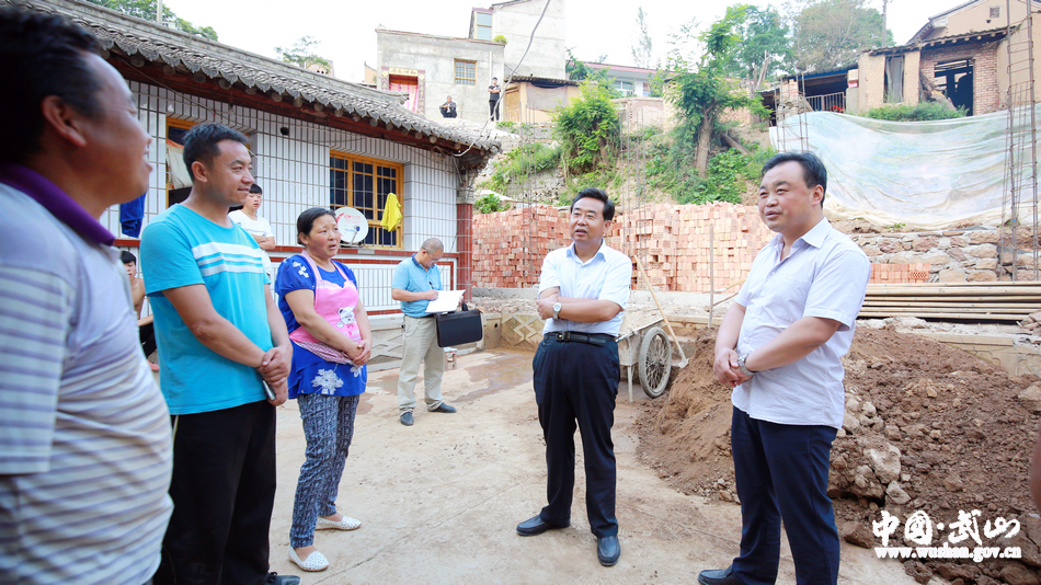 馬年自然村的于書萍是自力更生恢復(fù)重建的典型,她供兩個孩子上大學(xué),房屋在7月初的暴雨災(zāi)害中倒塌,重建房屋困難較大,鑒于此,鎮(zhèn)村兩級按程序納入貧困戶管理,給予適當(dāng)幫助。通過鎮(zhèn)村干部的宣傳動員,于書萍不等不靠,及早動手,歷時半個月時間,在原址拆除重建,一間占地70余平米的磚混新房的地梁已經(jīng)澆筑完成,索鴻賓高興的和幫工親鄰一一握手,鼓勵他們要堅定信心,用勤勞的雙手戰(zhàn)勝生活困難,把日子越過越好。他強(qiáng)調(diào),要切實加快災(zāi)后恢復(fù)重建進(jìn)度,堅持因村因戶施策,加強(qiáng)質(zhì)量監(jiān)管,完善排水等配套基礎(chǔ)設(shè)施建設(shè),著力提升防災(zāi)抗災(zāi)能力,確保災(zāi)后恢復(fù)重建取得實效。要廣泛宣傳發(fā)動,在全縣營造社會各界關(guān)心支持災(zāi)區(qū)、幫助貧困群眾的濃厚氛圍,凝聚多方合力,全面打贏災(zāi)后重建和脫貧攻堅這場硬仗。