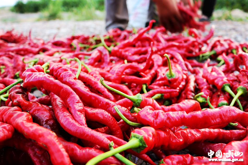 七月的咀頭,草木芬芳,綠意盎然,武山縣咀頭鄉(xiāng)種植的1000多畝高山航椒4號(hào)進(jìn)入了收獲季節(jié)。走在咀頭鄉(xiāng)王山村東西坪上,放眼望去,一串串航椒在陽光的沐浴下發(fā)著紅艷艷的亮光,紅紅火火,看上去很是喜慶。一片片紅艷艷的航椒地里有著許多正在彎腰忙碌著的身影,種植群眾正在趕時(shí)間采摘門椒,采摘的門椒從背簍和編織袋中傾倒出來,瞬時(shí)堆積成了一座小山堆,一個(gè)個(gè)臉上洋溢著豐收的喜悅。