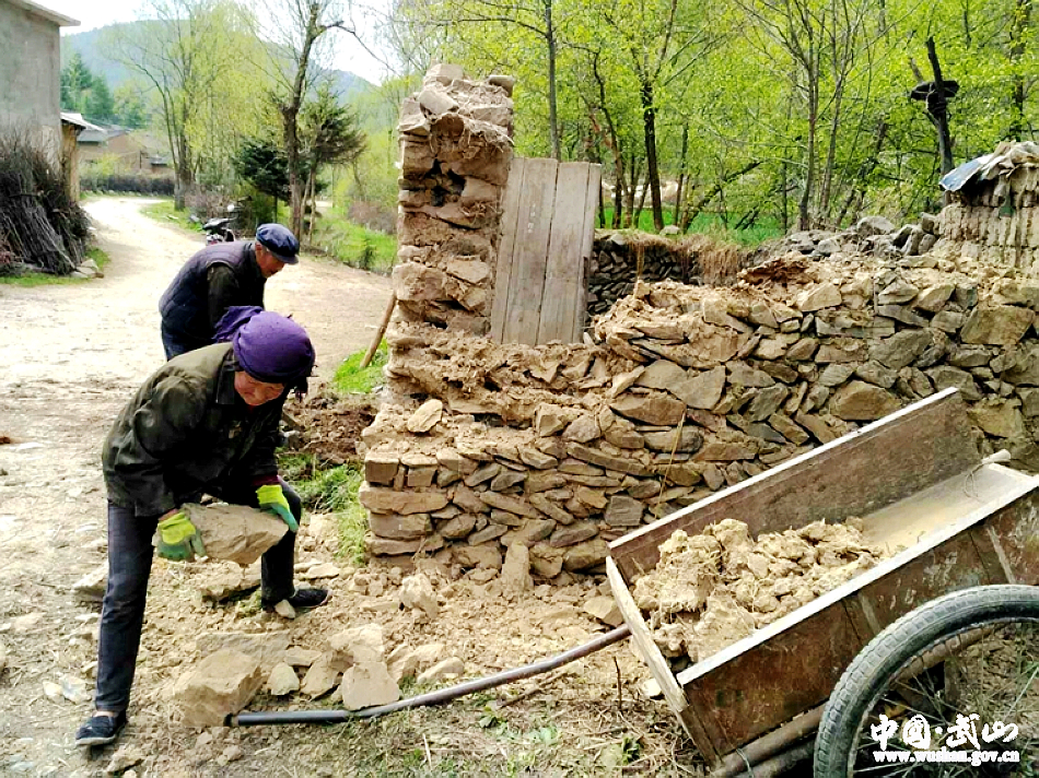 (灘歌鎮(zhèn)本深溝村干部群眾齊心協(xié)力拆除危舊墻體)