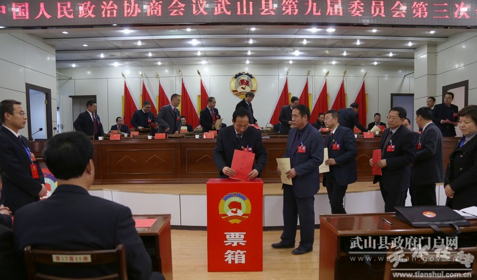 會(huì)議通過了政協(xié)第九屆武山縣委員會(huì)第三次會(huì)議選舉辦法;通過了大會(huì)總監(jiān)票人、監(jiān)票人,宣布了總計(jì)票人、計(jì)票人名單。