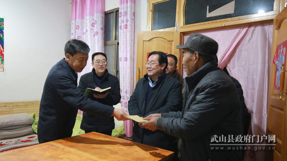 1月18日,武山縣委副書記、縣長(zhǎng)馬勤學(xué)深入樺林鎮(zhèn)陳咀村和鴛鴦鎮(zhèn)包坪、丁門村,走訪慰問(wèn)村兩委班子成員、困難群眾,向大家送去了新春的祝福和問(wèn)候,并和大家一起對(duì)明年脫貧攻堅(jiān)各項(xiàng)工作進(jìn)行詳細(xì)謀劃。