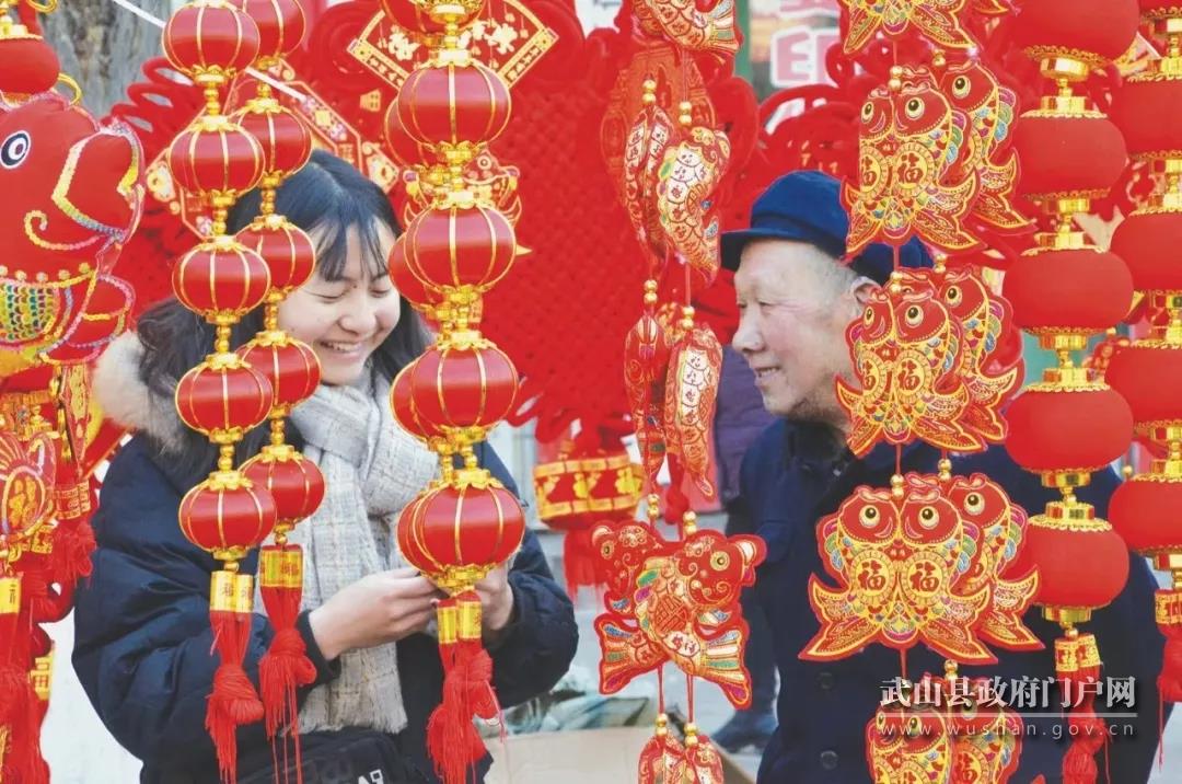 在燈籠攤點(diǎn)前,記者見到洛門鎮(zhèn)裴家莊村的裴大爺帶著老伴興高采烈地選購(gòu)年貨。裴大爺一邊挑選燈籠一邊告訴記者:“今天,我和老伴專程過來趕年集,置辦些年貨,買對(duì)聯(lián)、燈籠和蔬菜,打算紅紅火火過新年!”