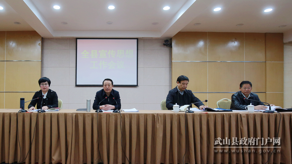 會議強(qiáng)調(diào),2019年是新中國成立70周年,是鞏固脫貧成效、全面建成小康社會的關(guān)鍵之年,做好的今年宣傳思想工作意義重大。各鄉(xiāng)鎮(zhèn)、各部門、各單位要緊緊圍繞學(xué)習(xí)宣傳貫徹習(xí)近平新時代中國特色社會主義思想和黨的十九大精神這個首要任務(wù),認(rèn)真貫徹落實中央和省、市、縣委關(guān)于宣傳思想工作的部署要求,增強(qiáng)“四個意識”,堅定“四個自信”,堅決做到“兩個維護(hù)”,全力抓好抓實學(xué)習(xí),深入開展宣講普及,不斷強(qiáng)化督查問效,持續(xù)推動習(xí)近平新時代中國特色社會主義思想家喻戶曉、深入人心。要牢牢掌握意識形態(tài)工作領(lǐng)導(dǎo)權(quán)和主動權(quán),持續(xù)壯大主流思想輿論,著力加強(qiáng)網(wǎng)上宣傳、輿論引導(dǎo)和信息化建設(shè),切實增強(qiáng)社會主義意識形態(tài)的凝聚力和引領(lǐng)力。要持之以恒抓好精神文明建設(shè),鞏固提升省級文明縣創(chuàng)建成果,持續(xù)加強(qiáng)社會主義核心價值觀教育,深入推進(jìn)“精神扶貧”工程,大力倡導(dǎo)文明新風(fēng),培養(yǎng)擔(dān)當(dāng)民族復(fù)興大任的時代新人。要深度挖掘我縣文化資源,深入實施文藝精品創(chuàng)作工程,推動文化事業(yè)和文化產(chǎn)業(yè)高質(zhì)量發(fā)展,更好滿足人民群眾精神文化需求。要加強(qiáng)對外宣傳,聚焦全縣工作大局,精心策劃新中國成立70周年重大主題宣傳活動,主動講好武山故事、傳播武山聲音、展示武山形象。要全面加強(qiáng)宣傳思想戰(zhàn)線黨的建設(shè),堅持守正創(chuàng)新,勇于擔(dān)當(dāng)作為,不斷增強(qiáng)宣傳干部的腳力、眼力、腦力、筆力,打造一支政治過硬、本領(lǐng)高強(qiáng)、求實創(chuàng)新、能打勝仗的宣傳思想工作隊伍,奮力開創(chuàng)全縣宣傳思想工作新局面。