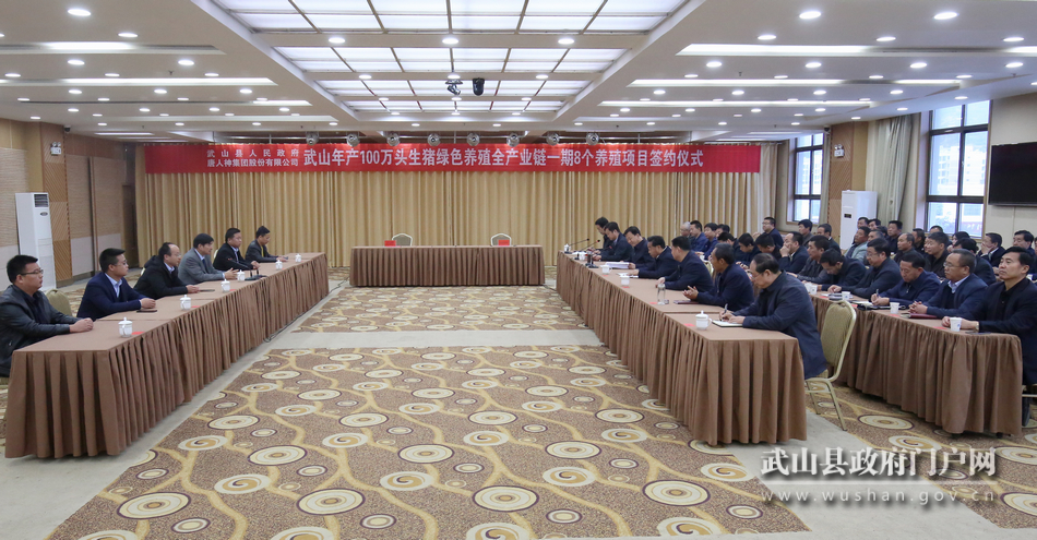 簽約儀式上,馬勤學(xué)代表縣四大組織對唐人神集團給予武山的關(guān)心、支持和信任表示了感謝。他說,唐人神集團是全國首批農(nóng)業(yè)產(chǎn)業(yè)化重點龍頭企業(yè),長期致力于生豬產(chǎn)業(yè)鏈一體化經(jīng)營,實力雄厚、技術(shù)先進,在現(xiàn)代生態(tài)農(nóng)業(yè)全產(chǎn)業(yè)鏈建設(shè)運營領(lǐng)域有著豐富的經(jīng)驗和雄厚的實力,是名副其實的行業(yè)領(lǐng)軍企業(yè)。今年7月,武山縣與唐人神集團在湖南株洲簽訂了《武山年產(chǎn)100萬頭生豬綠色養(yǎng)殖全產(chǎn)業(yè)鏈項目框架協(xié)議》,計劃投資23.7億元建設(shè)武山年產(chǎn)100萬頭生豬全產(chǎn)業(yè)鏈綠色養(yǎng)殖項目。該項目對于推動我縣產(chǎn)業(yè)發(fā)展、構(gòu)建現(xiàn)代循環(huán)農(nóng)業(yè)體系、持續(xù)鞏固脫貧攻堅成效具有重要的現(xiàn)實意義。希望唐人神集團以此次簽約為新的起點,加快項目進度,拓展合作領(lǐng)域,力促二期、三期養(yǎng)殖項目,屠宰場、飼料廠、肉制品加工廠等后期子項目早日開工建設(shè),努力實現(xiàn)互利共贏。他表示,武山縣將始終秉持“你投資我服務(wù),你發(fā)財我發(fā)展”和“企業(yè)帶著資金來,剩下的事情我們辦”的理念,以改革的舉措、高效的服務(wù),認真履行協(xié)議,切實抓好項目各項保障工作,全力保障項目早開工、早建設(shè)、早投產(chǎn),努力實現(xiàn)共贏發(fā)展。