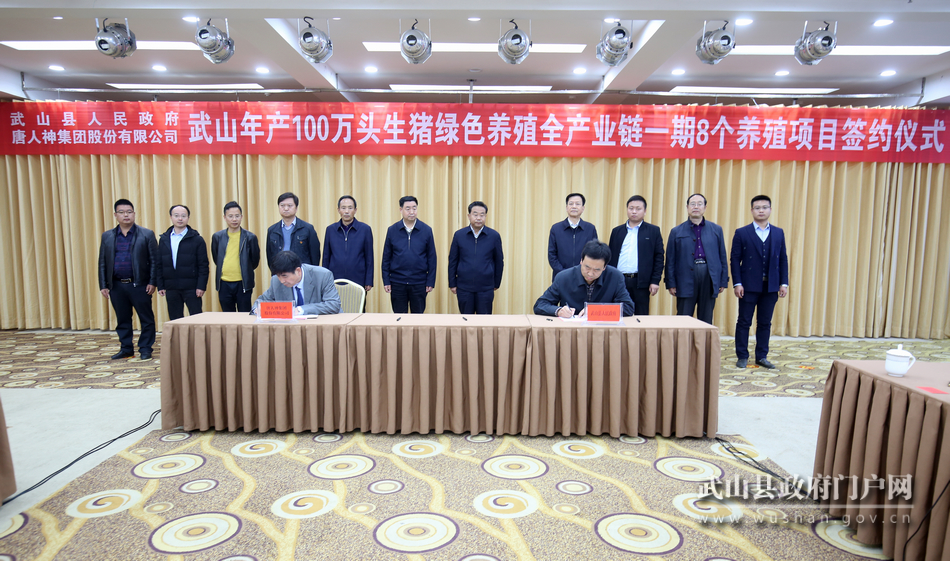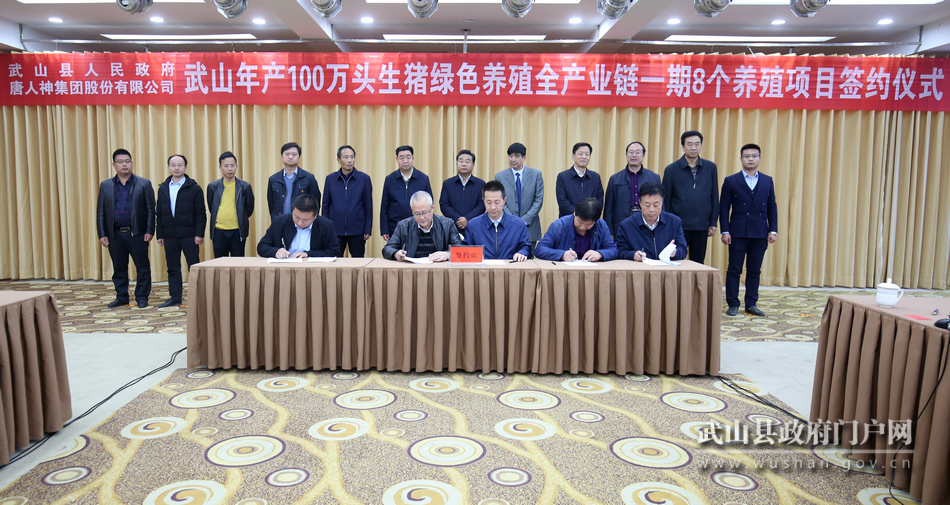 10月24日,武山縣與唐人神集團舉行100萬頭生豬綠色養(yǎng)殖全產(chǎn)業(yè)鏈一期8個養(yǎng)殖項目簽約儀式。