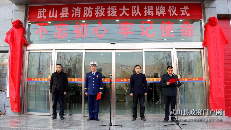隨后,武山縣委常委、常務(wù)副縣長(zhǎng)王志軍代表縣委、縣政府講話(huà)。他高度評(píng)價(jià)了全縣消防救援隊(duì)伍改革轉(zhuǎn)制以來(lái)的工作成效,指出此次正式揭牌,標(biāo)志著武山消防救援隊(duì)伍發(fā)展邁入正規(guī),也承載著縣委、縣政府的重托、寄托著全縣人民群眾的期待。希望消防救援大隊(duì)全體指戰(zhàn)員不忘初心、不辱使命,繼續(xù)為武山縣經(jīng)濟(jì)建設(shè)保駕護(hù)航。一要進(jìn)一步提高政治站位。從樹(shù)牢“四個(gè)意識(shí)”、堅(jiān)定“四個(gè)自信”、做到“兩個(gè)維護(hù)”的高度,深入學(xué)習(xí)貫徹習(xí)近平新時(shí)代中國(guó)特色社會(huì)主義思想,忠實(shí)踐行習(xí)近平總書(shū)記重要訓(xùn)詞精神,永做黨和人民的忠誠(chéng)衛(wèi)士。二要進(jìn)一步提升救援能力。立足綜合應(yīng)急救援“國(guó)家隊(duì)、主力軍”職能定位,按照紀(jì)律部隊(duì)標(biāo)準(zhǔn)建設(shè)隊(duì)伍,嚴(yán)格管理教育,強(qiáng)化執(zhí)勤訓(xùn)練,隨時(shí)做好搶大險(xiǎn)、救大災(zāi)的準(zhǔn)備,在人民最需要的時(shí)候沖鋒在前、英勇善戰(zhàn),以愛(ài)民助民為民的實(shí)際行動(dòng),樹(shù)立消防救援隊(duì)伍的良好形象。三要進(jìn)一步夯實(shí)防控基礎(chǔ)。歲末年初歷來(lái)是火災(zāi)事故易發(fā)多發(fā)期,要深入開(kāi)展冬春火災(zāi)防控工作,尤其要高標(biāo)準(zhǔn)做好“兩節(jié)”、“兩會(huì)”消防安保工作,為全縣經(jīng)濟(jì)發(fā)展、社會(huì)穩(wěn)定做出新的、更大的貢獻(xiàn)。
