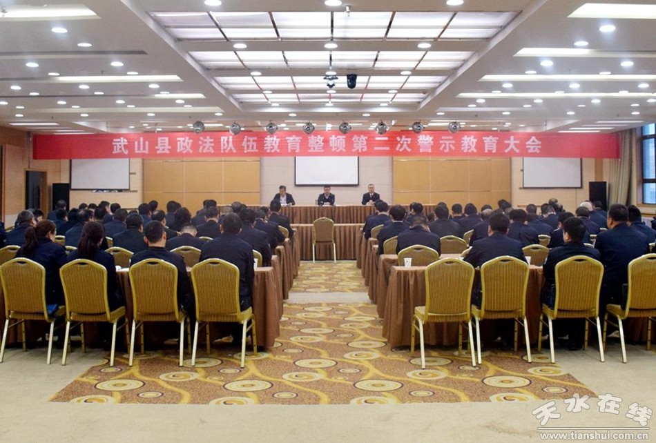 4月25日,武山縣委常委、政法委書記、縣政法隊伍教育整頓領(lǐng)導(dǎo)小組常務(wù)副組長林如海主持召開全縣政法隊伍教育整頓第二次警示教育大會。縣紀(jì)委監(jiān)委負(fù)責(zé)人通報了全省政法隊伍警示教育違紀(jì)違法典型案例,觀看了警示教育專題片《代價》和《權(quán)欲之殤》?h政法各單位領(lǐng)導(dǎo)班子成員及各庭、隊、所負(fù)責(zé)人等共計100余人參加會議。