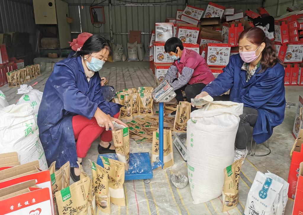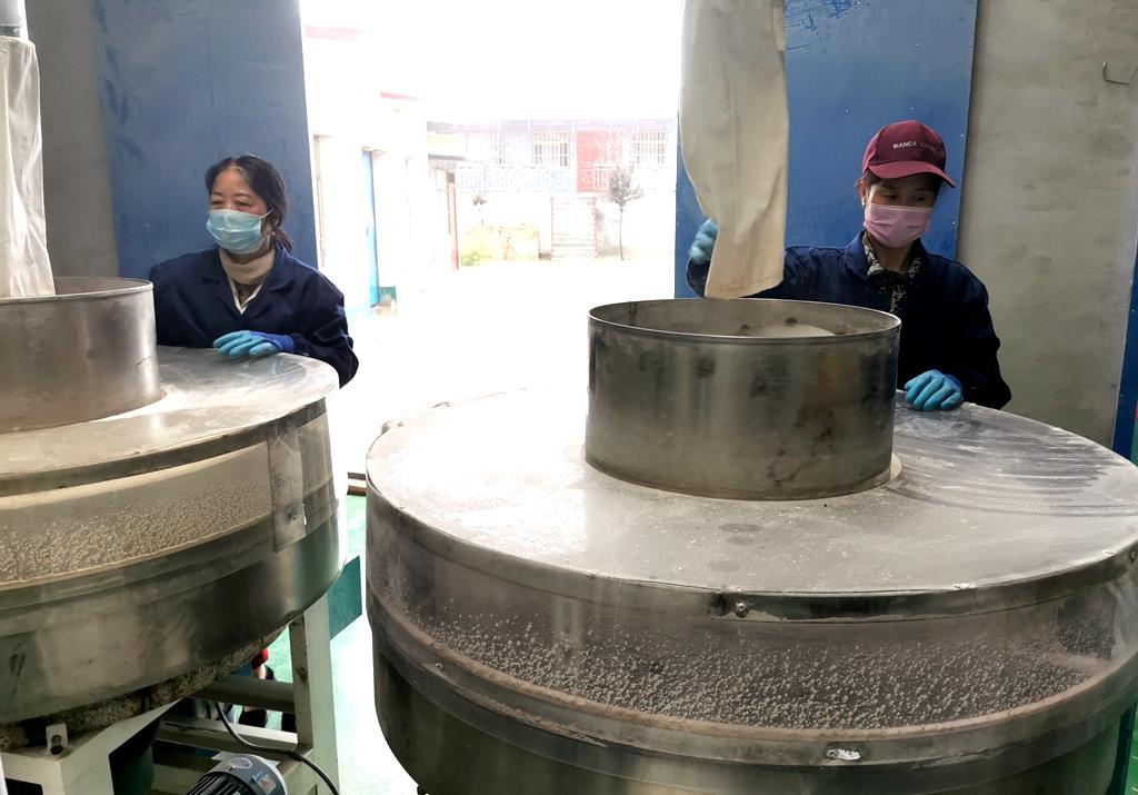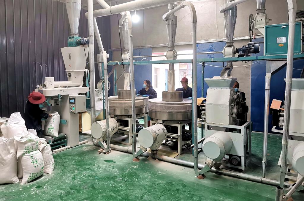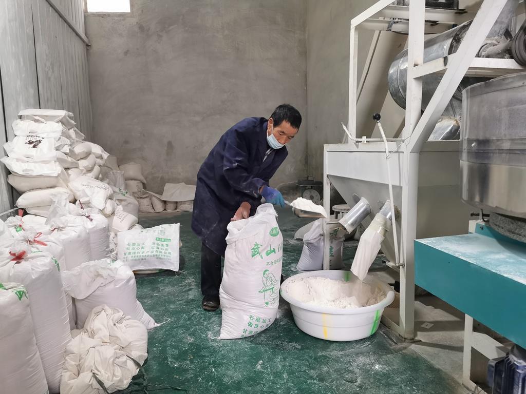 武山縣融媒體中心9月16日訊(記者 關(guān)招宏 董世雄 石奇煒 馬國棟 楊耀斌)粒粒飽滿散發(fā)著陽光和泥土清香的小麥被淘洗去糠后靜置兩個小時,然后上膛在石磨中慢慢碾磨,隨著磨盤的轉(zhuǎn)動,雪白的面粉在兩頁磨盤夾縫里緩緩流出,無任何添加劑、原汁原味的面粉就是這樣誕生了。這是記憶深處兒時家里磨面的場景,如今每天在咀頭鄉(xiāng)管山村璟創(chuàng)扶貧車間上演。