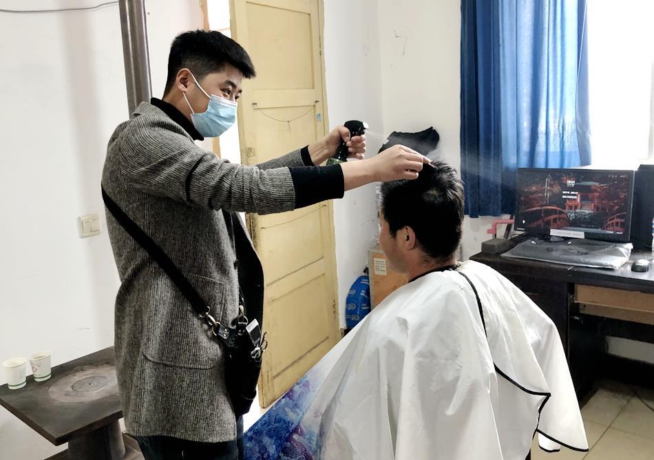 愛心理發(fā)師呂亞峰和晉霞霞是洛門恒星美容美發(fā)店的負責(zé)人,這段時間因為疫情防控休息在家,當(dāng)了解到很多同志奮戰(zhàn)在疫情防控一線,頭發(fā)都長的很長了,決定在做好自身防護的前提下,自己開車帶著梳子、吹風(fēng)機、剪刀等理發(fā)工具來到高樓鎮(zhèn),為一線防疫人員提供免費的愛心理發(fā)服務(wù),以實際行動助力高樓鎮(zhèn)打贏疫情防控阻擊戰(zhàn)!白鳛橐幻戆l(fā)師,能為抗疫盡一點綿薄之力我感覺很高興!甭彘T恒星美容美發(fā)店負責(zé)人說。