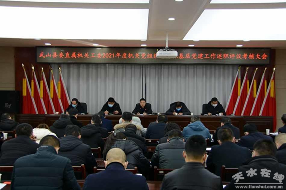 武山縣融媒體中心1月19日訊(記者 楊耀斌)1月19日,武山縣委直屬機(jī)關(guān)工委召開2021年度機(jī)關(guān)黨組織書記抓基層黨建工作述職評議考核大會,傳達(dá)學(xué)習(xí)省、市、縣委2021年度黨委(黨組)書記抓基層黨建工作述職評議考核大會精神,聽取縣直機(jī)關(guān)黨組織書記抓基層黨建工作情況匯報(bào),安排部署重點(diǎn)工作任務(wù)?h委直屬機(jī)關(guān)工委班子成員,工委所屬機(jī)關(guān)黨委、黨總支、黨支部書記共計(jì)70余人參加會議。