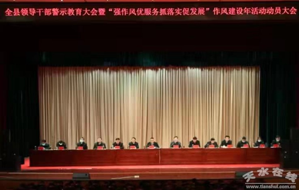 武山縣融媒體中心2月18日訊(記者 楊彥春 王繼明)2月18日,武山縣召開領導干部警示教育大會暨“強作風、優(yōu)服務、抓落實、促發(fā)展”作風建設年活動動員大會,貫徹落實黨中央和省、市委有關(guān)會議精神,開展領導干部警示教育,部署全縣作風建設年活動,動員全縣各級各部門以強作風、優(yōu)服務、抓落實、促發(fā)展為主題,解放思想,振奮精神,鼓足干勁,一心一意謀發(fā)展,全力以赴抓落實,確?h第十五次黨代會、縣“兩會”及全縣工作會議確定的各項目標任務落到實處。