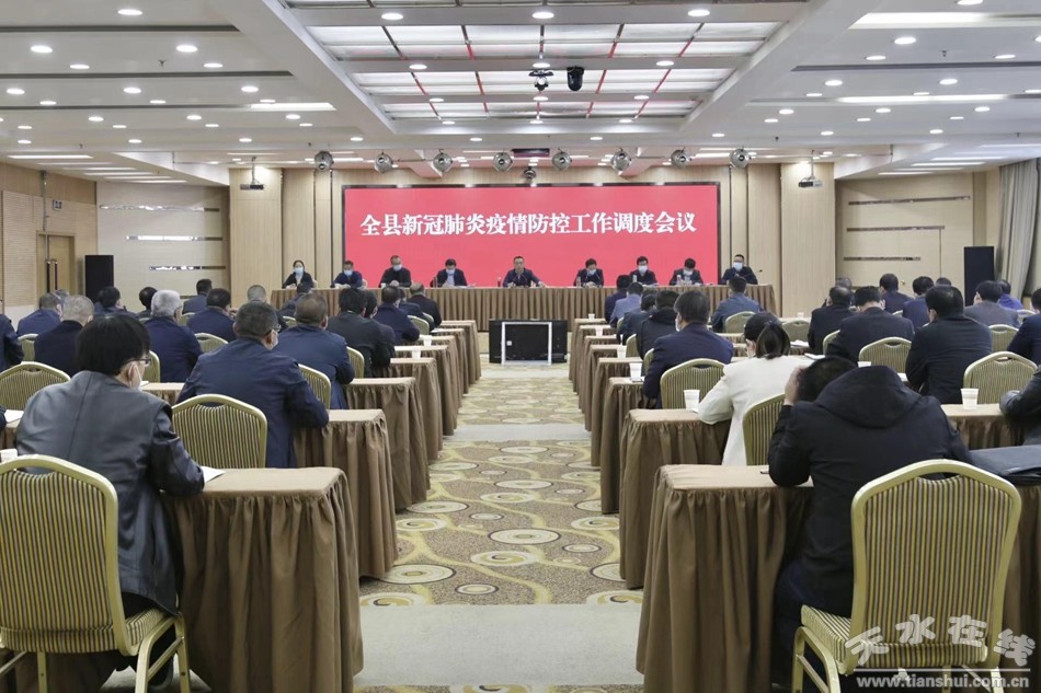 武山縣融媒體中心3月18日訊 (記者 蒲愛(ài)民 張燕燕) 3月18日,縣委書(shū)記、縣疫情聯(lián)防聯(lián)控領(lǐng)導(dǎo)小組組長(zhǎng)王新強(qiáng)主持召開(kāi)全縣新冠肺炎疫情防控工作調(diào)度會(huì)議,分析當(dāng)前疫情防控形勢(shì),對(duì)全縣疫情防控工作進(jìn)行再安排再部署。縣委副書(shū)記、縣長(zhǎng)、縣疫情聯(lián)防聯(lián)控領(lǐng)導(dǎo)小組組長(zhǎng)王志成傳達(dá)學(xué)習(xí)習(xí)近平總書(shū)記在中共中央政治局常務(wù)委員會(huì)會(huì)議上的重要講話精神,縣政府副縣長(zhǎng)、縣疫情聯(lián)防聯(lián)控領(lǐng)導(dǎo)小組副組長(zhǎng)李峰傳達(dá)學(xué)習(xí)省委副書(shū)記、省長(zhǎng)任振鶴在天水調(diào)研時(shí)的指示精神以及全省、全市新冠肺炎疫情防控工作調(diào)度會(huì)議精神,