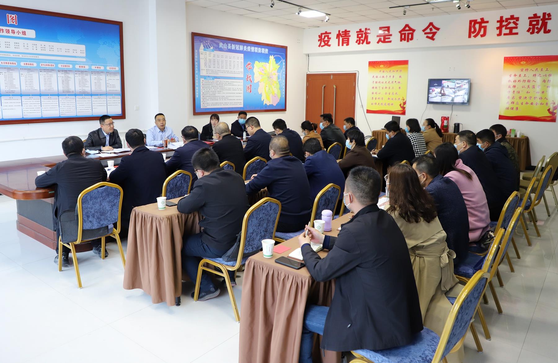 3月21日,武山縣委書記、縣新冠肺炎疫情聯(lián)防聯(lián)控領(lǐng)導(dǎo)小組組長(zhǎng)王新強(qiáng)主持召開專題會(huì)議,安排部署城關(guān)鎮(zhèn)社區(qū)、洛門鎮(zhèn)鎮(zhèn)區(qū)大規(guī)模核酸檢測(cè)應(yīng)急演練工作?h委常委、宣傳部部長(zhǎng)、縣疫情聯(lián)防聯(lián)控領(lǐng)導(dǎo)小組副組長(zhǎng)胡麗霞,縣委常委、城關(guān)鎮(zhèn)黨委書記、縣疫情聯(lián)防聯(lián)控領(lǐng)導(dǎo)小組副組長(zhǎng)王想成,縣政府副縣長(zhǎng)、縣疫情聯(lián)防聯(lián)控領(lǐng)導(dǎo)小組副組長(zhǎng)李峰出席會(huì)議,縣疫情聯(lián)防聯(lián)控領(lǐng)導(dǎo)小組相關(guān)成員單位負(fù)責(zé)人參加會(huì)議。