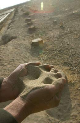 | 2007年4月27日,樹木遭砍伐,沙子快速的侵蝕田地。 |