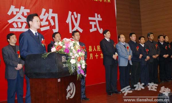 天水市副市長趙衛(wèi)東致辭;張家川回族自治縣長馬小龍和武漢凱迪控股投資有限公司質(zhì)?偙O(jiān)督、天水分公司總經(jīng)理黃閏泉分別在簽約儀式上作了講話;簽約儀式由縣政府副縣長安智輝主持。