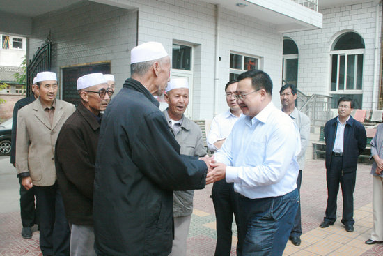 在穆斯林群眾歡慶2010年爾德節(jié)來臨之際。9月7日,張家川回族自治縣委書記劉長江帶著縣委、縣政府對廣大穆斯林群眾的深情厚誼,在縣人大主任李升平,縣委副書記、縣長馬中奇,縣委副書記李肖鋒等縣四大組織領(lǐng)導(dǎo)陪同下,先后深入宣化崗拱北,南川道堂,張川鎮(zhèn)清真東大寺、西大寺、中街寺、西夭寺、西橋頭寺等全縣7座重點宗教活動場所,廣泛開展慰問活動,向宗教界人士及穆斯林群眾致以節(jié)日的衷心祝福和問候,并送去了節(jié)日慰問金。