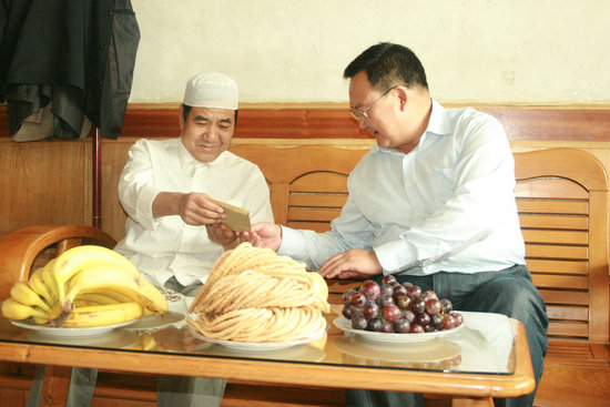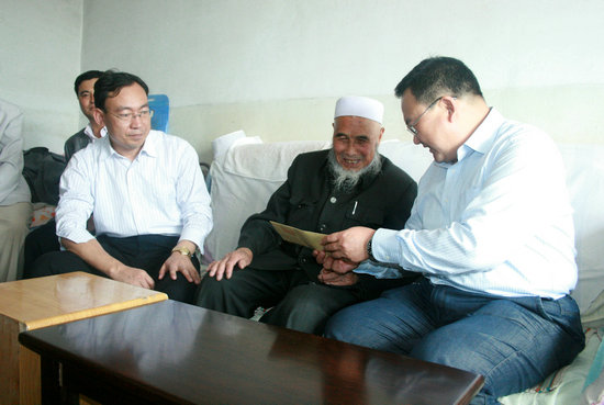 在穆斯林群眾歡慶2010年?duì)柕鹿?jié)來臨之際。9月7日,張家川回族自治縣委書記劉長江,縣委副書記、縣長馬中奇,縣委副書記李肖鋒等縣四大組織領(lǐng)導(dǎo)先后來到副地級退休老干部李義華、李映吉,正縣級退休老干部馬建國、馬聰,副縣級離休老干部袁世魁家中,看望慰問了廣大離退休老干部,并提前向他們送去了節(jié)日的衷心祝福和問候。