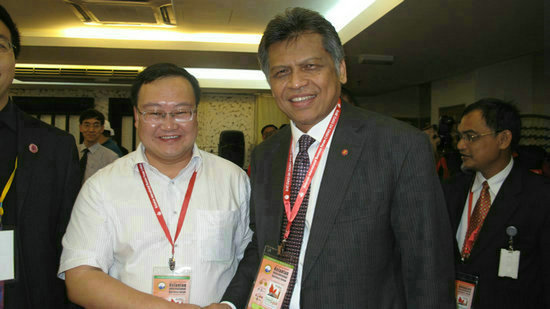 劉長(zhǎng)江與東盟秘書長(zhǎng)蘇霖先生握手
