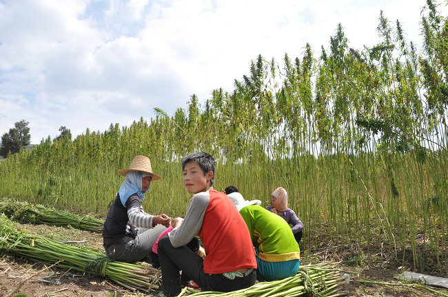 9月30日,記者來(lái)到馬鹿鄉(xiāng)大灘村80后農(nóng)民王曉光的大麻田地里。還沒(méi)進(jìn)地,笑聲、歌聲就已飄進(jìn)耳中!瓣P(guān)山里的麻籽兒?jiǎn),圓溜溜地個(gè)好……”王曉光一邊漫著自創(chuàng)的花兒,一邊和家人收割大麻。小王介紹,我們種植的大麻具有纖維長(zhǎng),色澤白的特點(diǎn),今年我種了5畝,收益6500多元哩!,每畝大麻產(chǎn)麻皮54公斤,麻籽52公斤,每畝直接經(jīng)濟(jì)收入1300元,大麻渾身是寶,經(jīng)濟(jì)利用價(jià)值高,很有市場(chǎng)。小王還說(shuō),“等大麻出手,明年再外包些地,擴(kuò)大規(guī)模,有規(guī)模才能有效益。”臨別時(shí),笑聲、歌聲仍在田野上空回蕩。