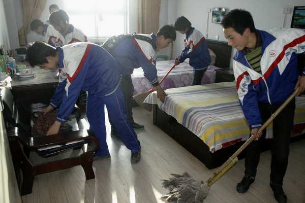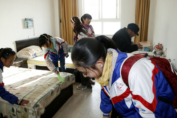 來自張川鎮(zhèn)中學的108名男女學生志愿者來到敬老院后便立即開展行動,他們拿起掃把打掃環(huán)境衛(wèi)生,清理雜物,有的負責擦玻璃、有的打掃走廊、有的打掃房間,干的熱火朝天,將敬老院收拾得干凈整潔。接著,志愿者們和老人們一起談心交流,詳細了解他們的生活和身體狀況,并給老人們按摩捶背。真是老老小小拉家常,暖暖深情訴關(guān)懷。