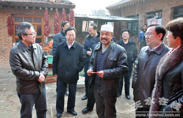12月6日上午,甘肅省地稅局黨組書記、局長吳仰東,天水市副市長溫利平一行來到天水市地稅局雙聯(lián)點張家川縣胡川鄉(xiāng)張堡村進行調研,詳細了解了天水市地稅局雙聯(lián)行動開展情況,察看了張堡村的文化站,看望慰問了聯(lián)系戶楊牛胡和楊文杰,并給他們送去了慰問金。