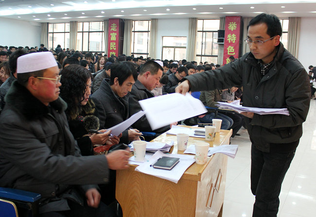工作人員發(fā)放測評表