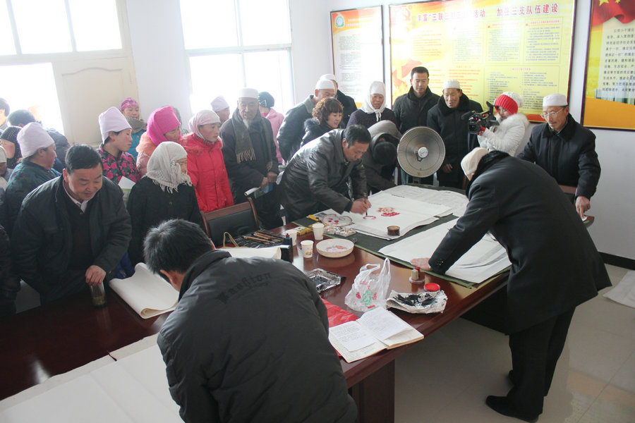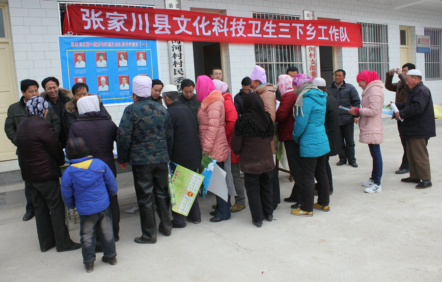 1月6日,張家川縣“文化科技衛(wèi)生”三下鄉(xiāng)活動走進“聯(lián)村聯(lián)戶、為民富民”行動重點示范村恭門鎮(zhèn)海河村,為海河村群眾共散發(fā)宣傳資料1200余份,贈送書畫作品212幅,義診200多人次。受到了海河村群眾的交口稱贊,縣人大辦、縣委宣傳部、文明辦、文廣局、文聯(lián)、勞務辦、農業(yè)局、畜牧局、恭門鎮(zhèn)等單位的相關負責人及干部參加了這次活動。