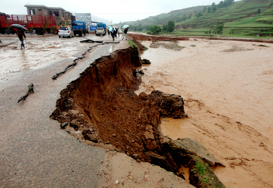 自6月20日起,張家川回族自治縣受大范圍、長時間、高強(qiáng)度的降雨災(zāi)害和7.22岷縣漳縣6.6級地震波動影響,導(dǎo)致山洪暴發(fā)、河水猛漲、山體滑坡、路基跨塌,部分公路、橋梁損壞嚴(yán)重。據(jù)不完全統(tǒng)計,截止7月22日下午20時許,因降雨共造成全縣農(nóng)村公路瀝青路面損毀93730/28.15平方米/公里,水泥路面損毀112470平米/公里,砂石路面損毀17505/117平米/公里,涵洞損毀9道,護(hù)坡?lián)p毀61立方米/2處,駁岸擋土墻塌方243/2平方/處,坍塌方272057/586平方/處,邊溝90347米,初步估計經(jīng)濟(jì)損失達(dá)9538.2萬元。