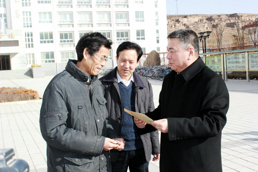 蒲軍一行在慰問張家川縣一中優(yōu)秀知識分子黨員馬維忠時,詳細詢問了馬維忠的工作、生活情況后說,你一直擔任縣一中副校長,你要充分發(fā)揮專業(yè)優(yōu)勢,立足崗位,認真教學,潛心鉆研,合理利用學校教育的資源,做好教書育人工作,培養(yǎng)更多的地方人才,為學校的轉型發(fā)展和張家川的教育事業(yè)發(fā)展做出做出更大的貢獻。