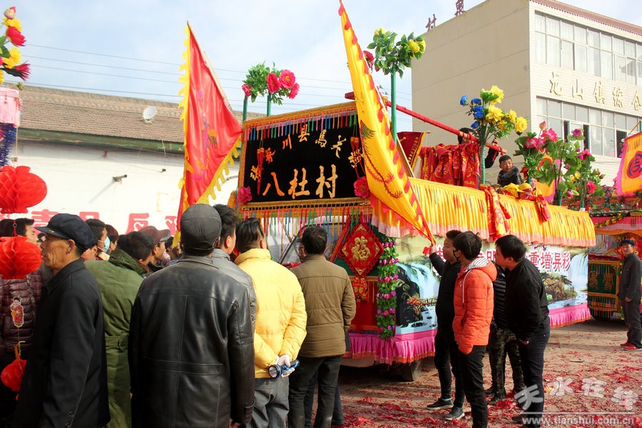“每年的正月初九我們一家老小都要來這里觀看社火,這里社火每年都有不同的主題,特別今年引人注目的是一位60多歲的老大媽自說自演,用快板這種表演方式,講述自己生活變遷,感謝黨,歌頌黨,歌唱美好新生活。讓我們深受鼓舞!”秦安縣隴城鎮(zhèn)中莊村村民王桂花驚喜的說道。