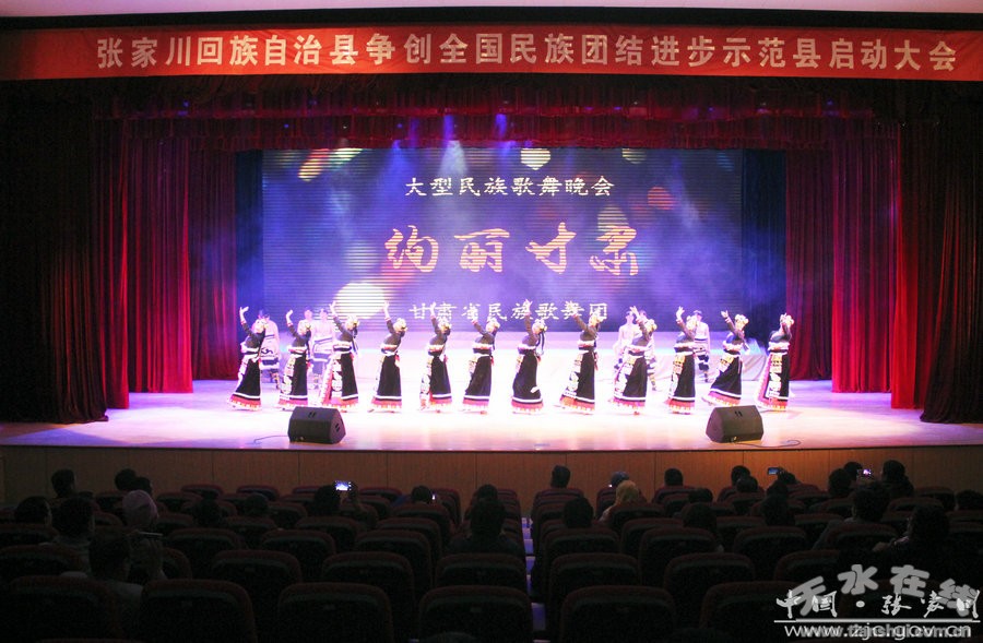 民族團(tuán)結(jié)手牽手,和諧發(fā)展心連心。在第十四個(gè)民族團(tuán)結(jié)進(jìn)步宣傳月活動(dòng)之際,5月11日,甘肅省民族歌舞團(tuán)一行50多名演職人員在張家川縣影視中心,用歡快的舞蹈、贊美的歌聲,唱響“共同團(tuán)結(jié)進(jìn)步,共同繁榮發(fā)展。”主題,為現(xiàn)場(chǎng)觀眾獻(xiàn)上了一場(chǎng)精彩紛呈的文藝演出。縣四大組織在家領(lǐng)導(dǎo)及回漢群眾600余人齊聚一堂觀看了演出。