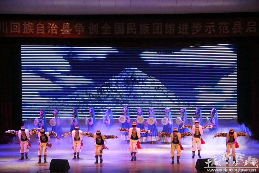演員們奉獻(xiàn)的回、漢、藏、蒙古等民族歌舞博得觀眾陣陣熱烈掌聲。