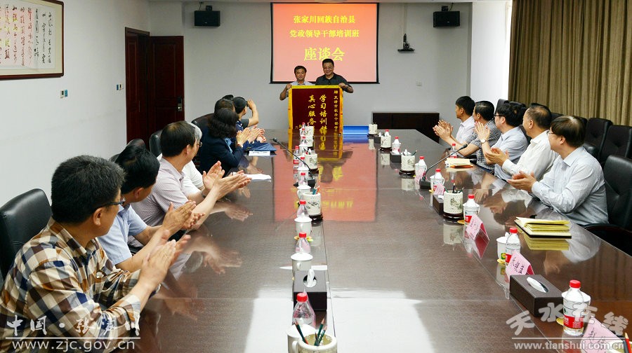 在第二期培訓(xùn)結(jié)束時,召開了張家川縣黨政領(lǐng)導(dǎo)干部培訓(xùn)班座談會,呂金洲等多位保稅區(qū)領(lǐng)導(dǎo)又專程參加,我縣向天津港保稅區(qū)工委(管委會)和天津稅務(wù)干部學(xué)校贈送了錦旗表示感謝。在座談會上,保稅區(qū)對下一步東西扶貧協(xié)作計劃進行了介紹,一是要提高扶貧項目安排的精準度,支持張家川縣優(yōu)勢產(chǎn)業(yè)發(fā)展,推動社會事業(yè)多領(lǐng)域合作,帶動更多的勞動力就業(yè)創(chuàng)業(yè);二是要做好精準脫貧工作,扶助當?shù)乩щy大學(xué)生;三是要當好張家川的“宣傳大使”,及時推介張家川本土特色產(chǎn)品,同時鼓勵支持保稅區(qū)企業(yè)到張家川投資興業(yè),把沿海開放優(yōu)勢和內(nèi)地資源優(yōu)勢緊密結(jié)合,做好扶貧協(xié)作這篇大文章,為加快張家川縣脫貧攻堅進程發(fā)揮積極的助推作用。