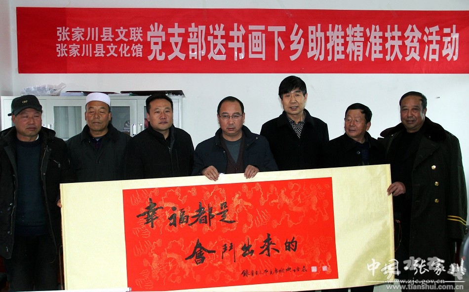 12月7日,張家川縣文聯(lián)、縣文化館結(jié)合12月份“主題黨日”,在張家川鎮(zhèn)趙陽(yáng)村開(kāi)展以送書(shū)畫(huà)下鄉(xiāng)助推精準(zhǔn)扶貧為主題的黨建結(jié)對(duì)共建活動(dòng)。縣委常委、宣傳部長(zhǎng)馬庭堅(jiān),縣文聯(lián)、縣文化館全體黨員,趙陽(yáng)村部分黨員群眾代表參加活動(dòng)。