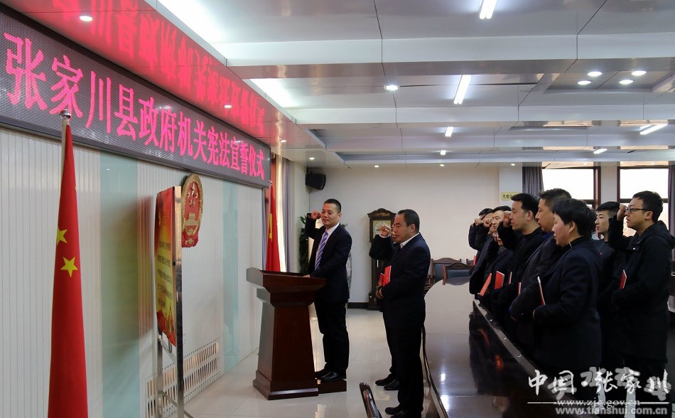 12月7日下午,張家川縣政府機關舉行憲法宣誓儀式?h委常委、副縣長王琦領誓。