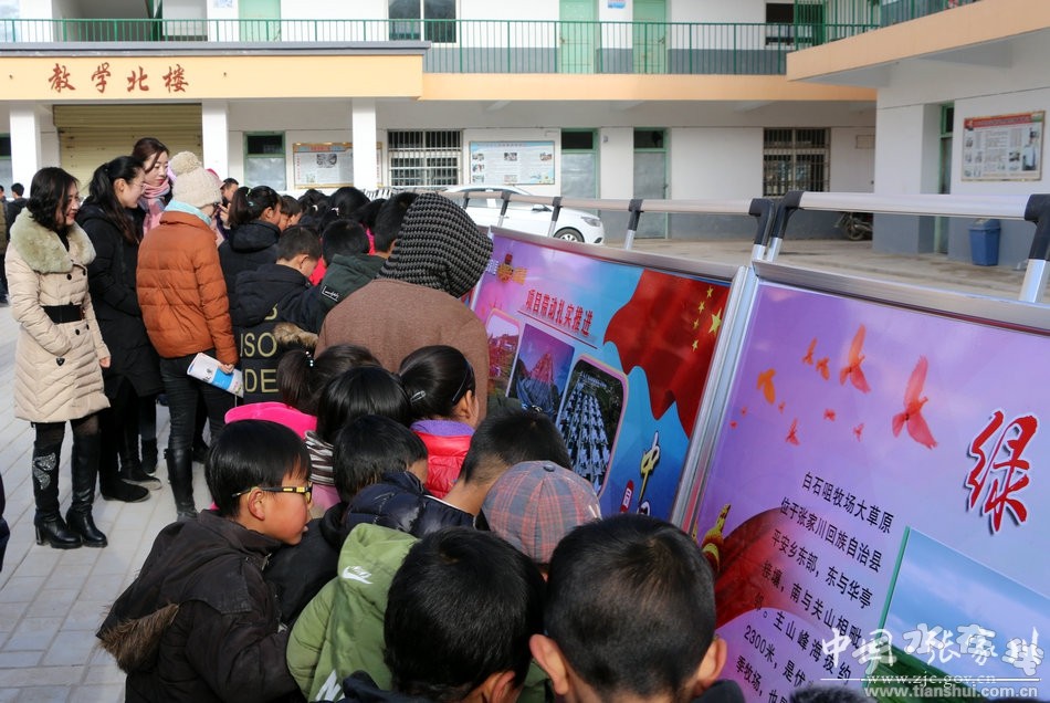 在川王中學院內(nèi),八年級一班馬莉婭同學站在圖片跟前,久久回望,一會兒指著一會兒用手圈著。面對好多同學,她說,我們的身邊發(fā)生了許多變化,學校門口路燈亮了,教師的黑板不再是石頭了,現(xiàn)在成了多媒體教學,我們在這樣的環(huán)境里學習真幸福。