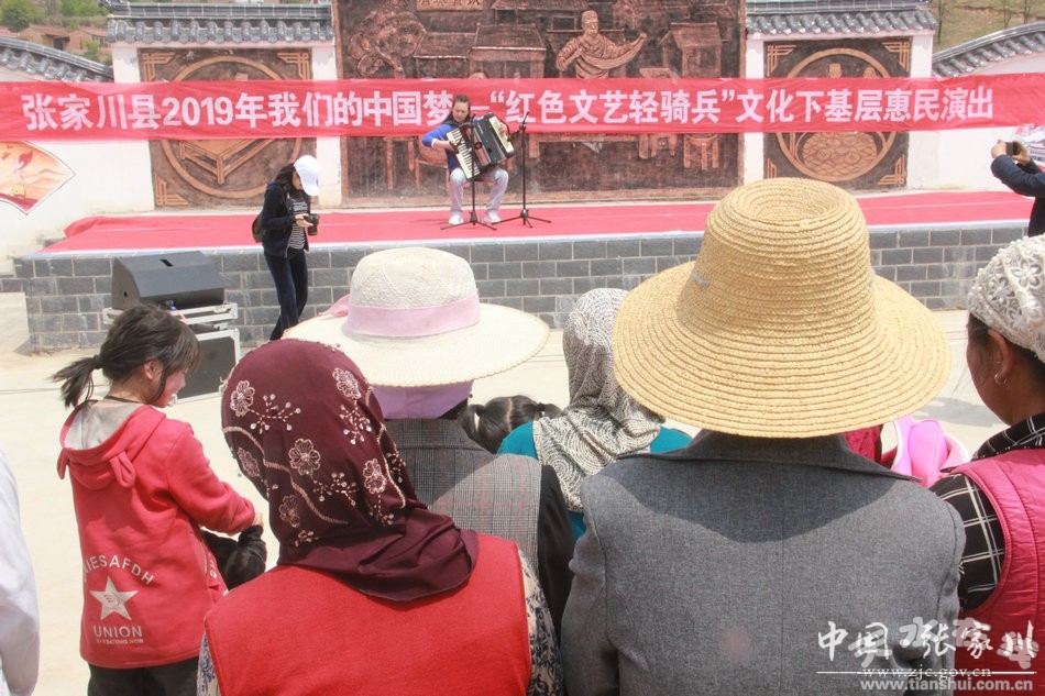演出活動形式多樣,有獨唱、古箏獨奏、丑角戲表演、手風(fēng)琴獨奏、張家川花兒、舞蹈、秦腔等。演出內(nèi)容富有深厚的民族文化內(nèi)涵,其中張家川花兒《院子里長的是綠韭菜》是張家川縣唯一的一項國家級非物質(zhì)文化遺產(chǎn)項目,是張家川的一張文化名片。以文化活動的方式潛移默化地向廣大群眾傳遞了歷經(jīng)幾百年發(fā)展傳承的地方民族傳統(tǒng)文化意識。讓張家川的廣大干部群眾認(rèn)真貫徹落實習(xí)近平系列講話精神,圍繞推動城鄉(xiāng)一體化、提升農(nóng)村文化文藝、公共文化服務(wù)水平,不斷豐富農(nóng)村精神文化生活,不斷推廣中國夢宣傳教育活動深入開展,為建設(shè)美麗和諧的張家川而努力奮斗。