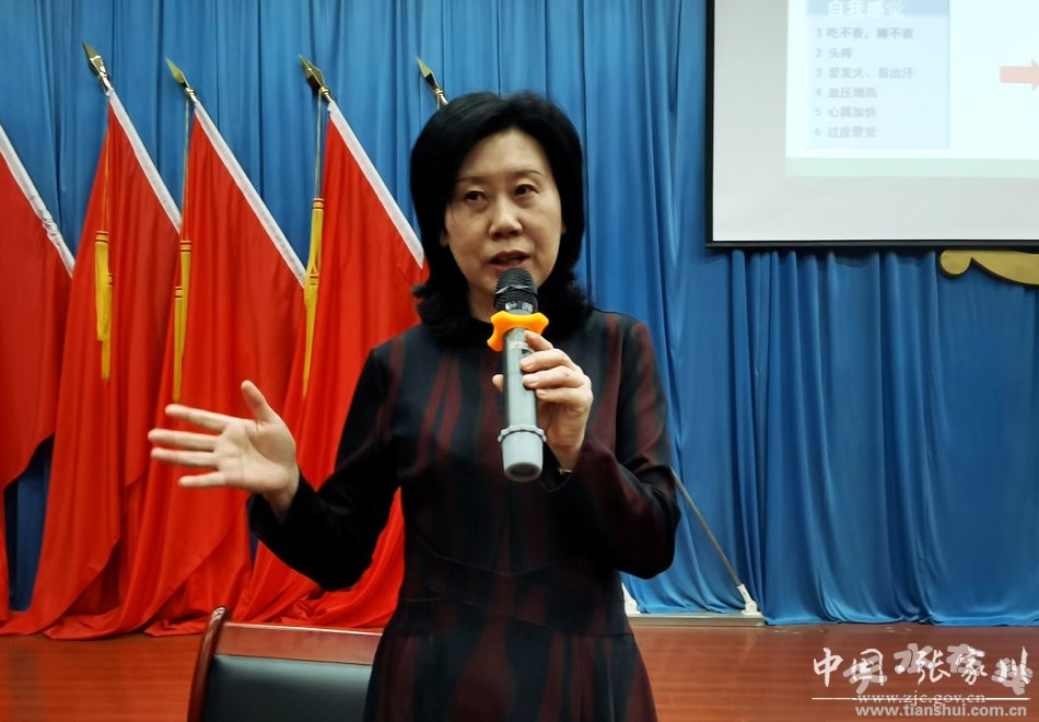 馬桂英老師以《基層干部心理健康與壓力調(diào)試》為題,圍繞“關(guān)注心理健康,釋放心靈壓力”這一主題,深入淺出講解了社會(huì)責(zé)任、人際關(guān)系、家庭關(guān)系、家風(fēng)正氣等方面內(nèi)容,教育引導(dǎo)人們要有一顆善良的心、有一顆包容的心、有一顆感恩的心,同時(shí)要學(xué)會(huì)換位思考,有協(xié)調(diào)能力和方法,把壓力變動(dòng)力。馬桂英老師在講解中,把深?yuàn)W難懂的醫(yī)學(xué)、心理學(xué)知識(shí),通過(guò)一個(gè)一個(gè)事例講述,讓與會(huì)人員受益匪淺。