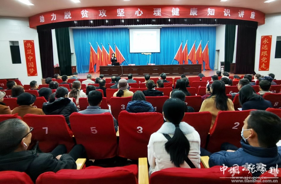 11月20日,由省委政法委聯(lián)合縣委政法委舉辦的助力脫貧攻堅(jiān)心理健康知識(shí)講座在縣委黨校禮堂開(kāi)講。講座特邀青少年心理健康輔導(dǎo)老師、甘肅益群社會(huì)服務(wù)高級(jí)講師、天水心理咨詢師協(xié)會(huì)專家委員會(huì)委員馬桂英,國(guó)家二級(jí)心理咨詢師、天水心理咨詢師協(xié)會(huì)專家委員會(huì)委員李仕剛授課。
