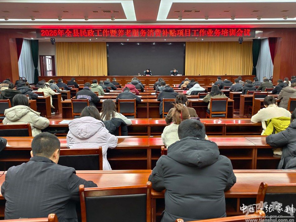 1月20日,張家川縣召開全縣民政工作暨養(yǎng)老服務(wù)消費(fèi)補(bǔ)貼項目工作業(yè)務(wù)培訓(xùn)會議,深入學(xué)習(xí)貫徹習(xí)近平新時代中國特色社會主義思想,全面落實全國、省市相關(guān)民政工作會議精神,總結(jié)2025年民政工作,分析當(dāng)前形勢,安排部署2026年重點任務(wù),并對養(yǎng)老服務(wù)消費(fèi)補(bǔ)貼項目開展業(yè)務(wù)培訓(xùn)。副縣長錢花出席會議并講話。