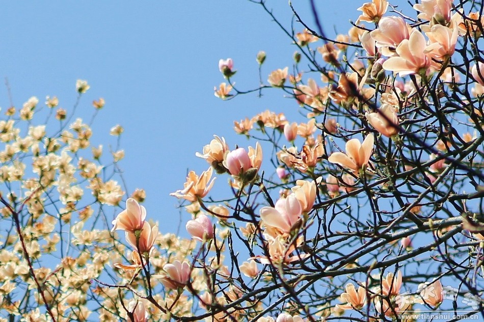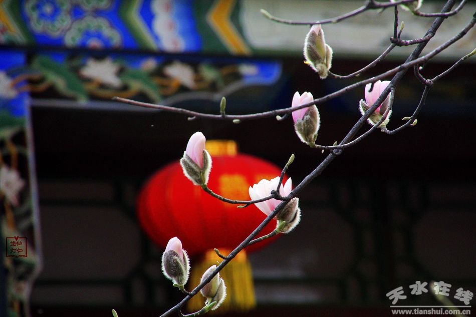 (雙玉蘭堂的千年玉蘭花開正艷 天水在線攝于2017年3月25日)